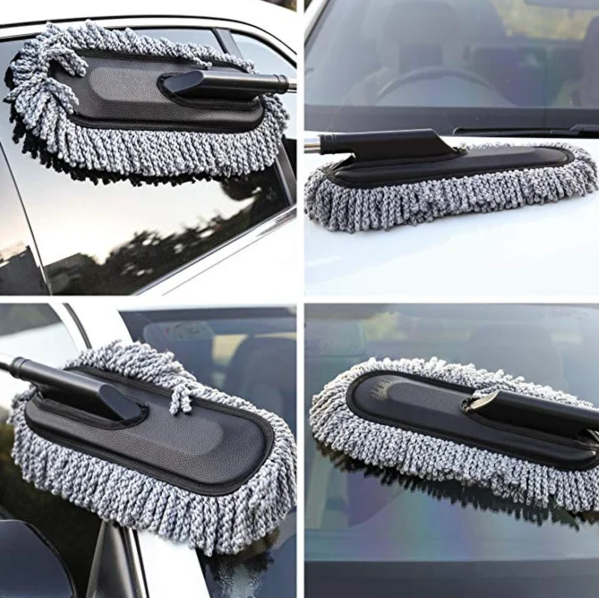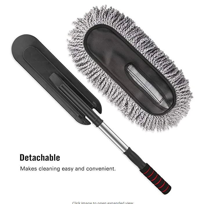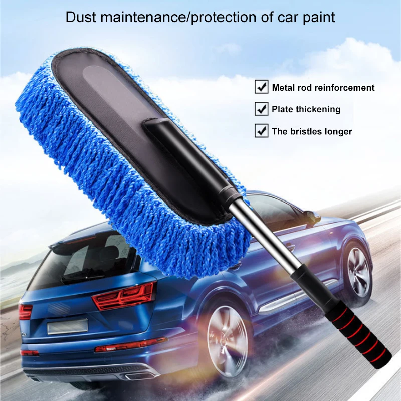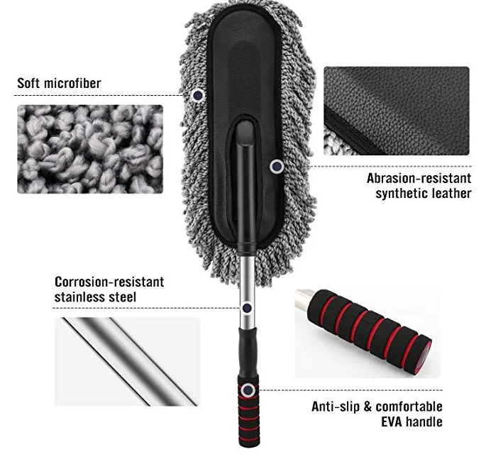 * CLEAN YOUR DUST COVERED CAR IN SECONDS -- Having no time to wash your dirty car? Don't worry! Grab this car duster with handle and your cleaning supplies. With just a few swipes, dust, or pollen will be gone and your car will be ready in minutes. A specially extended handle can reach difficult area like car roof and dashboard corners.